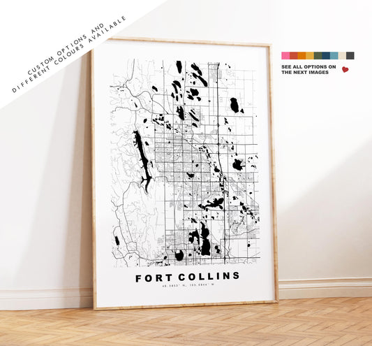 Fort Collins Map Print - City Map Poster - Map Art - USA City Maps - Fort Collins Print - Poster - Minimalist City Map - Colorado