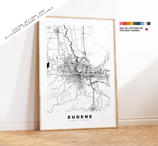 Eugene Map Print - City Map Poster - Map Art - USA City Maps - Eugene Print - Eugene Poster - Minimalist City Map - Oregon