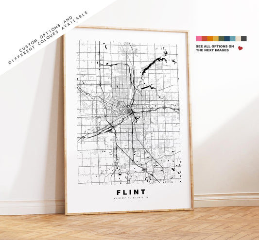 Flint Map Print - City Map Poster - Map Art - USA City Maps - Flint Print - Flint Poster - Minimalist City Map - Michigan