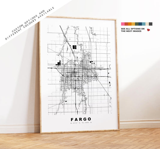 Fargo Map Print - City Map Poster - Map Art - USA City Maps - Fargo Print - Fargo Poster - Minimalist City Map - North Dakota