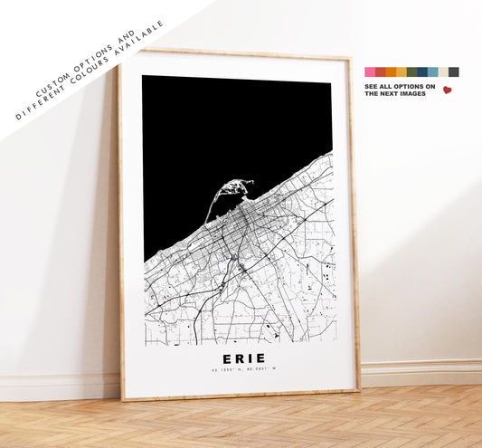 Erie Map Print - City Map Poster - Map Art - USA City Maps - Erie Print - Erie Poster - Minimalist City Map - Pennsylvania