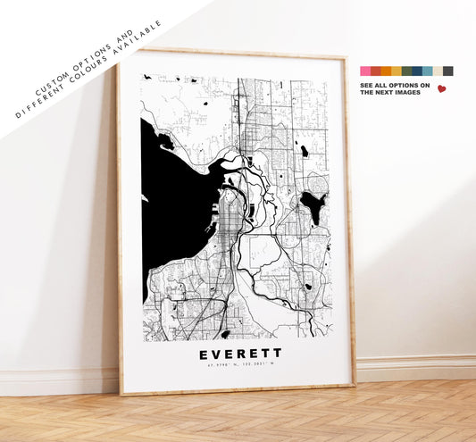 Everett Map Print - City Map Poster - Map Art - USA City Maps - Everett Print - Everett Poster - Minimalist City Map - Washington