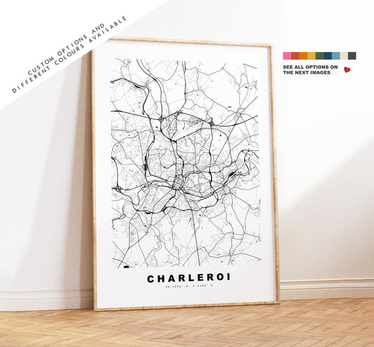 Charleroi Map Print - City Map Poster - Map - Map Wall Art - Belgium City Maps - Charleroi Print - Charleroi Poster - Minimalist City Map