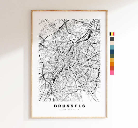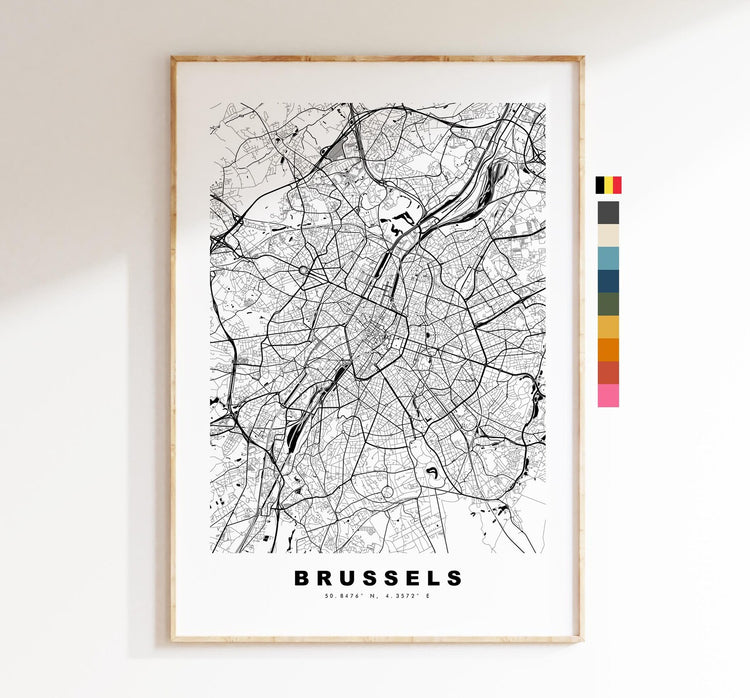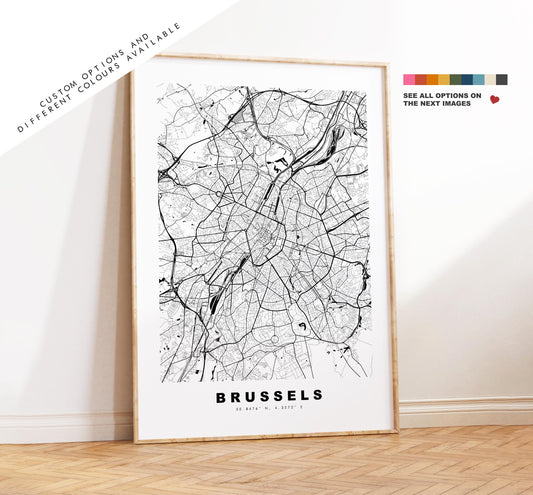 Brussels Map Print - City Map Poster - Map Art - Map Wall Art - Belgium City Maps - Brussels Print - Brussels Poster - Minimalist City Map
