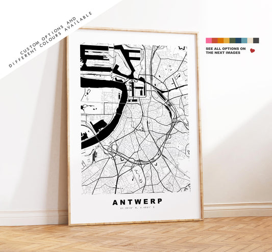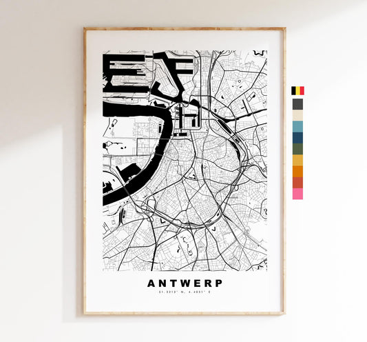 Antwerp Map Print - City Map Poster - Map Art - Map Wall Art - Belgium City Maps - Antwerp Print - Antwerp Poster - Minimalist City Map