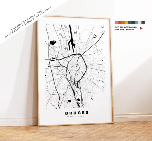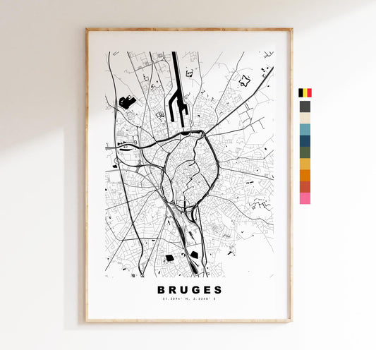 Bruges Map Print - City Map Poster - Map Art - Map Wall Art - Belgium City Maps - Bruges Print - Bruges Poster - Minimalist City Map