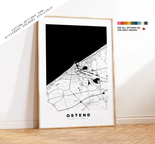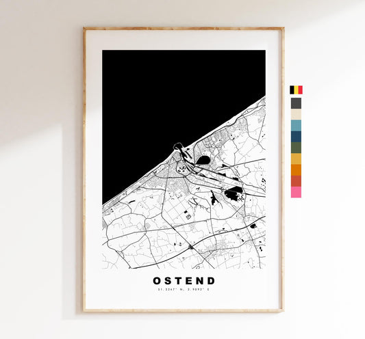 Ostend Map Print - City Map Poster - Map Art - Map Wall Art - Belgium City Maps - Ostend Print - Ostend Poster - Minimalist City Map