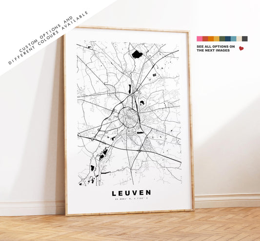 Leuven Map Print - City Map Poster - Map Art - Map Wall Art - Belgium City Maps - Leuven Print - Leuven Poster - Minimalist City Map