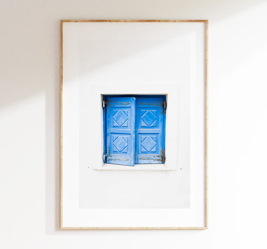 Blue Window Shutters Photography Print - Greece - Print - Poster - Santorini Photography - Greece Wall Art - Photo - Blue Wall Art - Blues