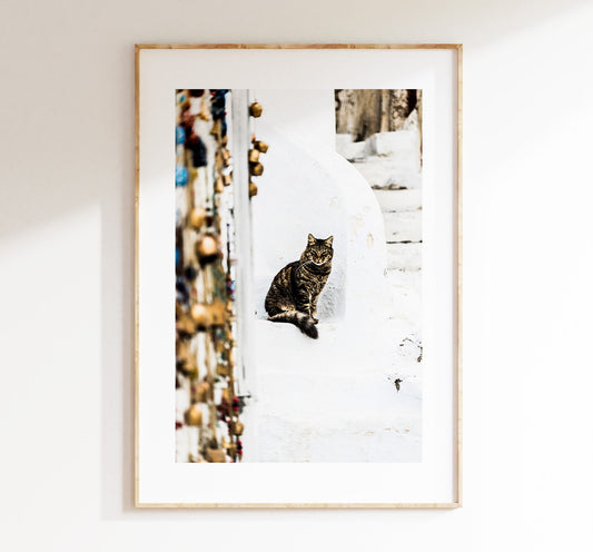 Cat Print - Greece - Print - Poster - Santorini Photography - Greece Wall Art - Fine Art Photography - Santorini Cats - Greek Wall Art