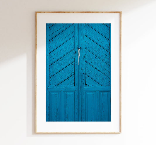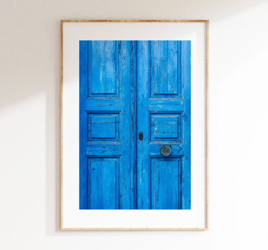 Blue Door Photography Print - Greece - Print - Poster - Santorini Photography - Greece Wall Art - Santorini Blue - Blue Wall Art Print