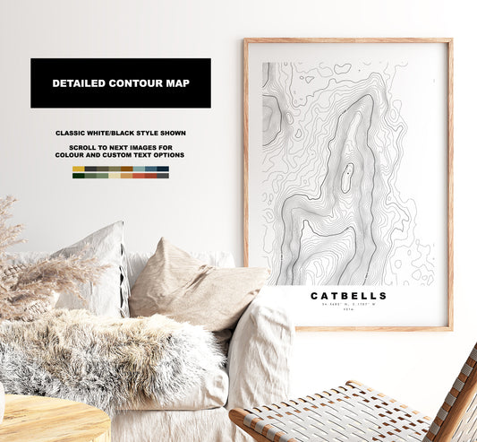 Catbells Print - Contour Map - Catbells Lake District Map - Lake District - Topographic Map - Print - Poster - Wall Art - Map - Topography