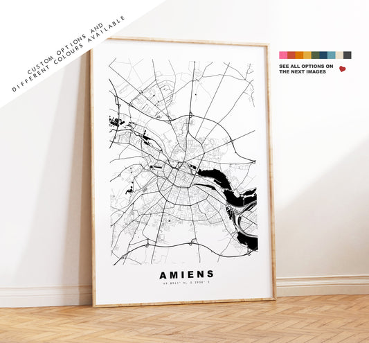 Amiens Map Print - City Map Poster - Map Wall Art - France City Maps - Amiens Print - Amiens Poster - Minimalist City Map - France