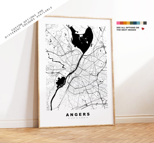 Angers Map Print - City Map Poster - Map Wall Art - France City Maps - Angers Print - Angers Poster - Minimalist City Map - France