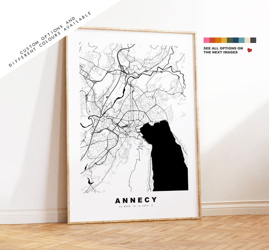 Annecy Map Print - City Map Poster - Map Wall Art - France City Maps - Annecy Print - Annecy Poster - Minimalist City Map - France