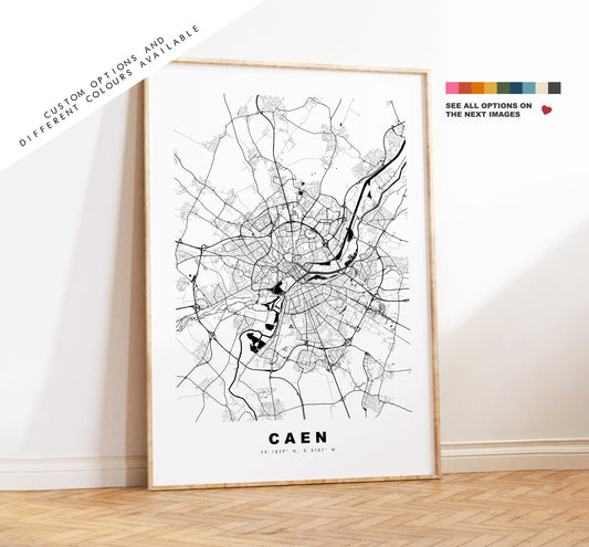 Caen Map Print - City Map Poster - Map Wall Art - France City Maps - Caen Print - Caen Poster - Minimalist City Map - France
