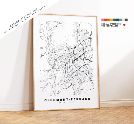 Clermont Ferrand Map Print - City Map Poster - Map Wall Art - France City Maps - Clermont Print - Clermont Poster - Minimalist City Map