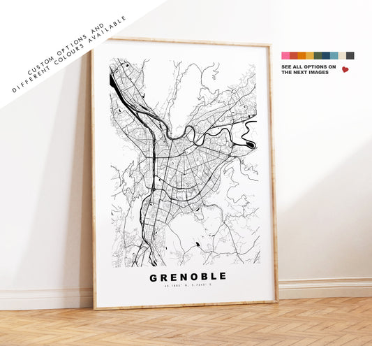 Grenoble Map Print - City Map Poster - Map Wall Art - France City Maps - Grenoble Print - Grenoble Poster - Minimalist City Map - France