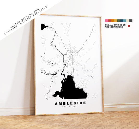 Ambleside Map Print - Minimalist City Map Poster - Map Art - Cumbria - Ambleside Print - Ambleside Poster - Different Colours Available