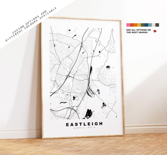 Eastleigh Map Print - Minimalist City Map Poster - Map Art - UK - Eastleigh Print - Eastleigh Poster - Different Colours Available