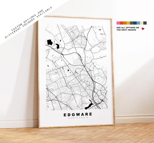 Edgware Map Print - Minimalist City Map Poster - Map Art - UK - Edgware Print - Edgware, London - Different Colours Available