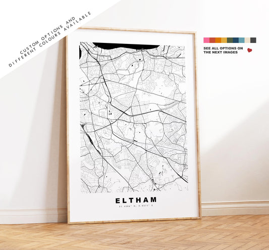 Eltham Map Print - Minimalist City Map Poster - Map Art - UK - Eltham Print - Eltham, London - Different Colours Available