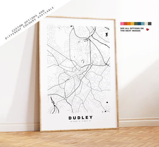 Dudley Map Print - Minimalist City Map Poster - Map Wall Art - UK - Dudley Print - Dudley Poster - Different Colours Available