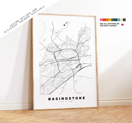 Basingstoke Map Print - Minimalist City Map Poster - Map Art - UK - Basingstoke Print - Basingstoke Poster - Different Colours Available