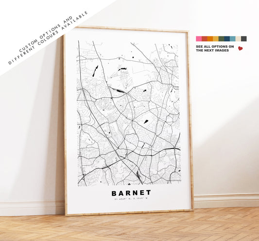 Barnet Map Print - Minimalist City Map Poster - Map Wall Art - UK - Barnet Print - Barnet Poster - Different Colours Available