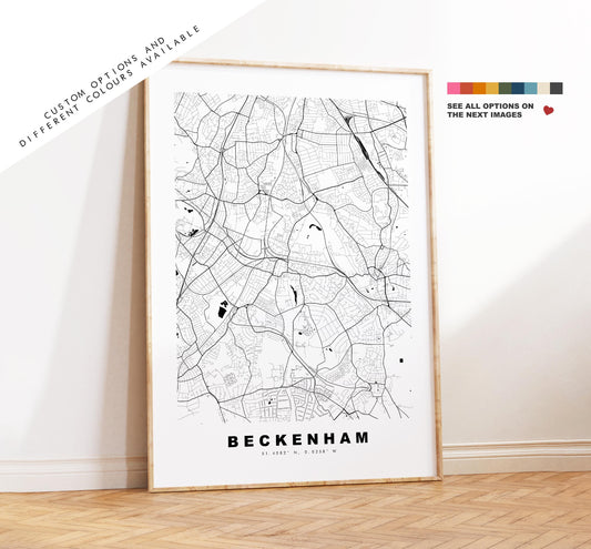 Beckenham Map Print - Minimalist City Map Poster - Map Art - UK - Beckenham Print - Beckenham, London - Different Colours Available