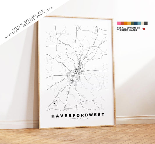 Haverfordwest Map Print - Minimalist City Map Poster - Map Art - Wales - UK - Haverfordwest Print - Poster - Different Colours Available