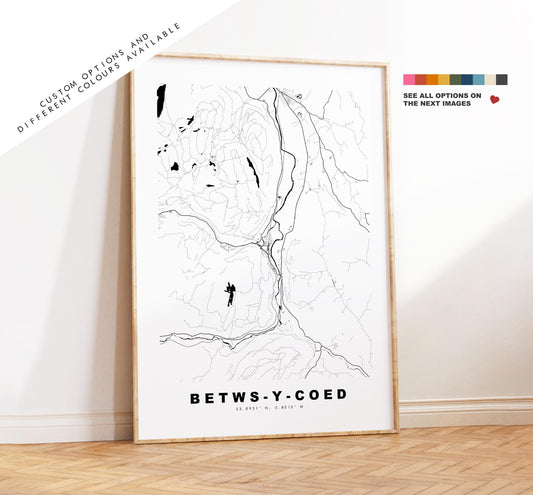 Betws-y-Coed Map Print - Minimalist City Map Poster - Map Art - Wales - UK - Betws-y-Coed Print - Poster - Different Colours Available