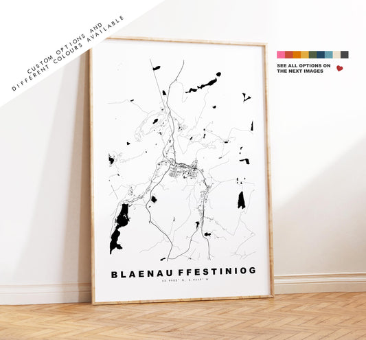 Blaenau Ffestiniog Map Print - Minimalist City Map Poster - Map Art - Wales - UK - Blaenau Ffestiniog Print - Different Colours Available