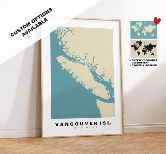 Vancouver Island Map Print - Personalised Map Gift - Framed or Canvas Options Available - Custom Text Options - Personalised Gift - North America