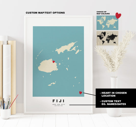 Fiji Map Print - Personalised Map Gift - Framed or Canvas Options Available - Custom Text Options - Personalised Gift - Oceania