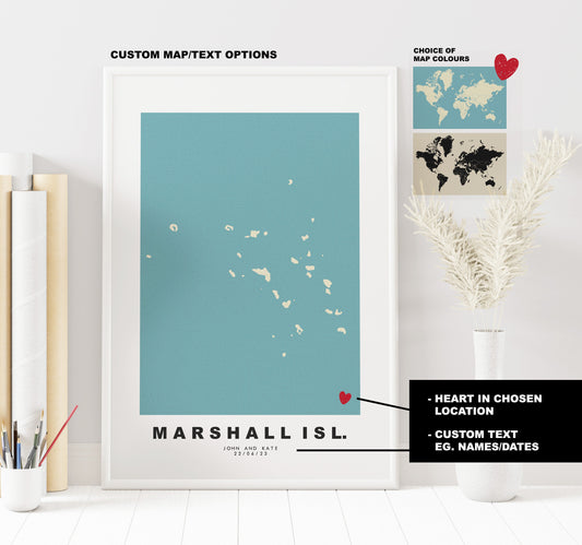 Marshall Islands Map Print - Personalised Map Gift - Framed or Canvas Options Available - Custom Text Options - Personalised Gift - Oceania