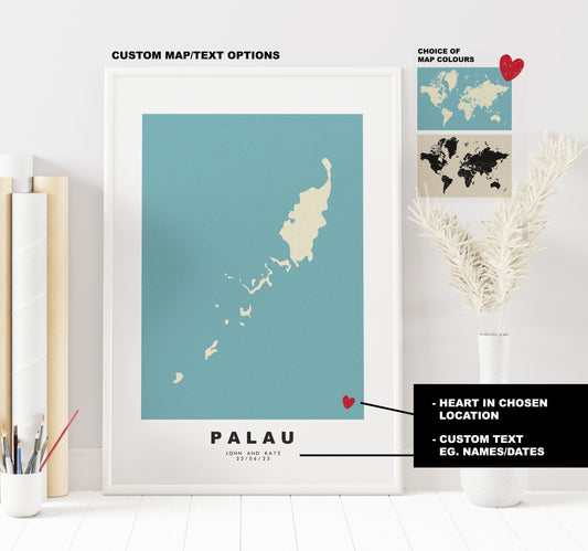 Palau Map Print - Personalised Map Gift - Framed or Canvas Options Available - Custom Text Options - Personalised Gift - Oceania