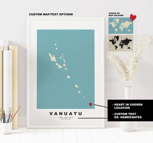 Vanuatu Map Print - Personalised Map Gift - Framed or Canvas Options Available - Custom Text Options - Personalised Gift - Oceania
