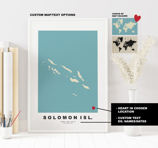 Soloman Islands Map Print - Personalised Map Gift - Framed or Canvas Options Available - Custom Text Options - Personalised Gift - Oceania