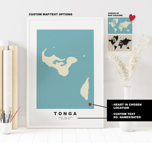 Tonga Map Print - Personalised Map Gift - Framed or Canvas Options Available - Custom Text Options - Personalised Gift - Oceania