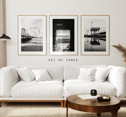 Southsea Black and White Print Set x3 - Sunsets - Photography Print Set - Portsmouth - Southsea - South Parade - Hotwalls - Shelters