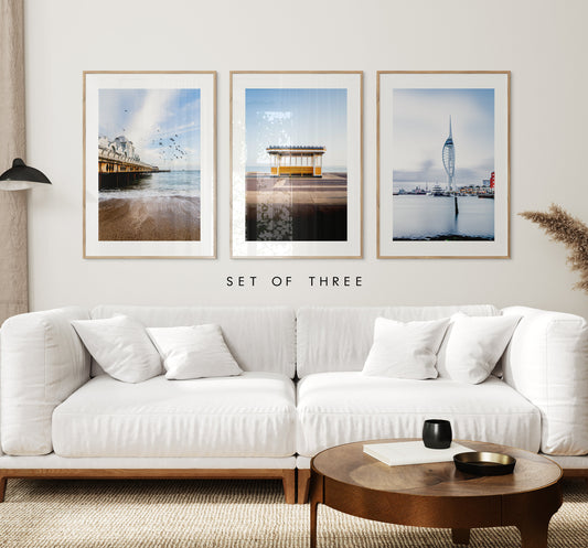 Print sets curated by us from our Portsmouth and Southsea collection. We have chosen sets based on colour/style/theme with photographs that complement each other well. Sets of two/three work well placed over large pieces of furniture.
