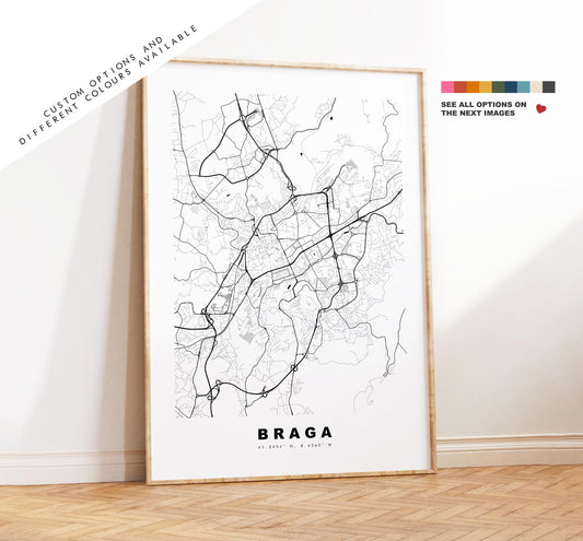 Braga Map Print - City Map Poster - Map Art - Map Wall Art - Portugal City Maps - Braga Print - Braga Poster - Minimalist City Map