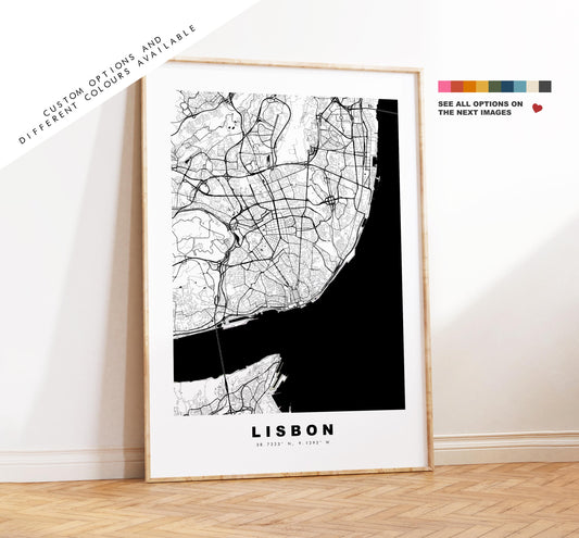 Lisbon Map Print - City Map Poster - Map Art - Map Wall Art - Portugal City Maps - Lisbon Print - Lisbon Poster - Minimalist City Map