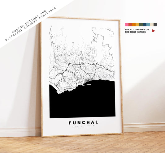 Funchal Map Print - City Map Poster - Map Art - Map Wall Art - Portugal City Maps - Funchal Print - Funchal Poster - Minimalist City Map