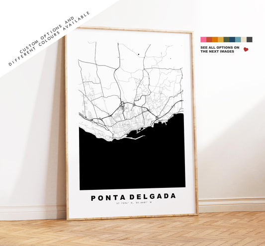 Ponta Delgada Map Print - City Map Poster - Map Art - Map Wall Art - Portugal City Maps - Ponta Delgada Print - Poster - Minimalist City Map