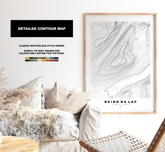 Beinn na Lap Print - Contour Map - Beinn na Lap Poster - Scotland - Topographic Map - Print - Wall Art - Beinn na Lap Map