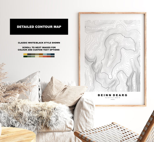 Beinn Dearg Print (Ullapool) - Contour Map - Beinn Dearg Poster - Scotland - Topographic Map - Print - Wall Art - Beinn Dearg Map