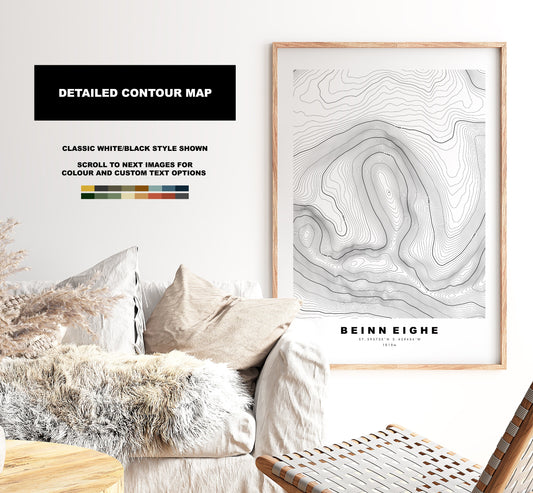 Beinn Eighe Print - Contour Map - Beinn Eighe Poster - Scotland - Topographic Map - Print - Wall Art - Ruadh-stac Mòr Map
