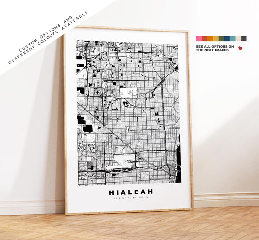Hialeah Map Print - City Map Poster - Map Art - USA City Maps - Hialeah Print - Hialeah Poster - Minimalist City Map - Florida